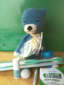 Blue Cat decided on the soft-picks – they fit his mouth and are the best to get at those hard-to-reach cake crumbs. But he’s keeping the brush in case he’s ever attacked by a set of wind-up chattering teeth.