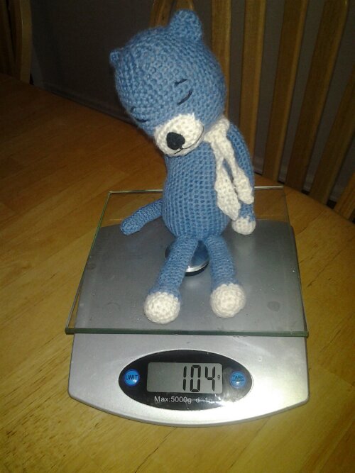 And of course you need a scale to measure your ingredients, since everything in Blue Cat’s soap recipe is measured by weight. As you can see, Blue Cat has been working out – he’s down to his fighting weight of 100 grams (the 4 extra grams are from clothing and shoes).