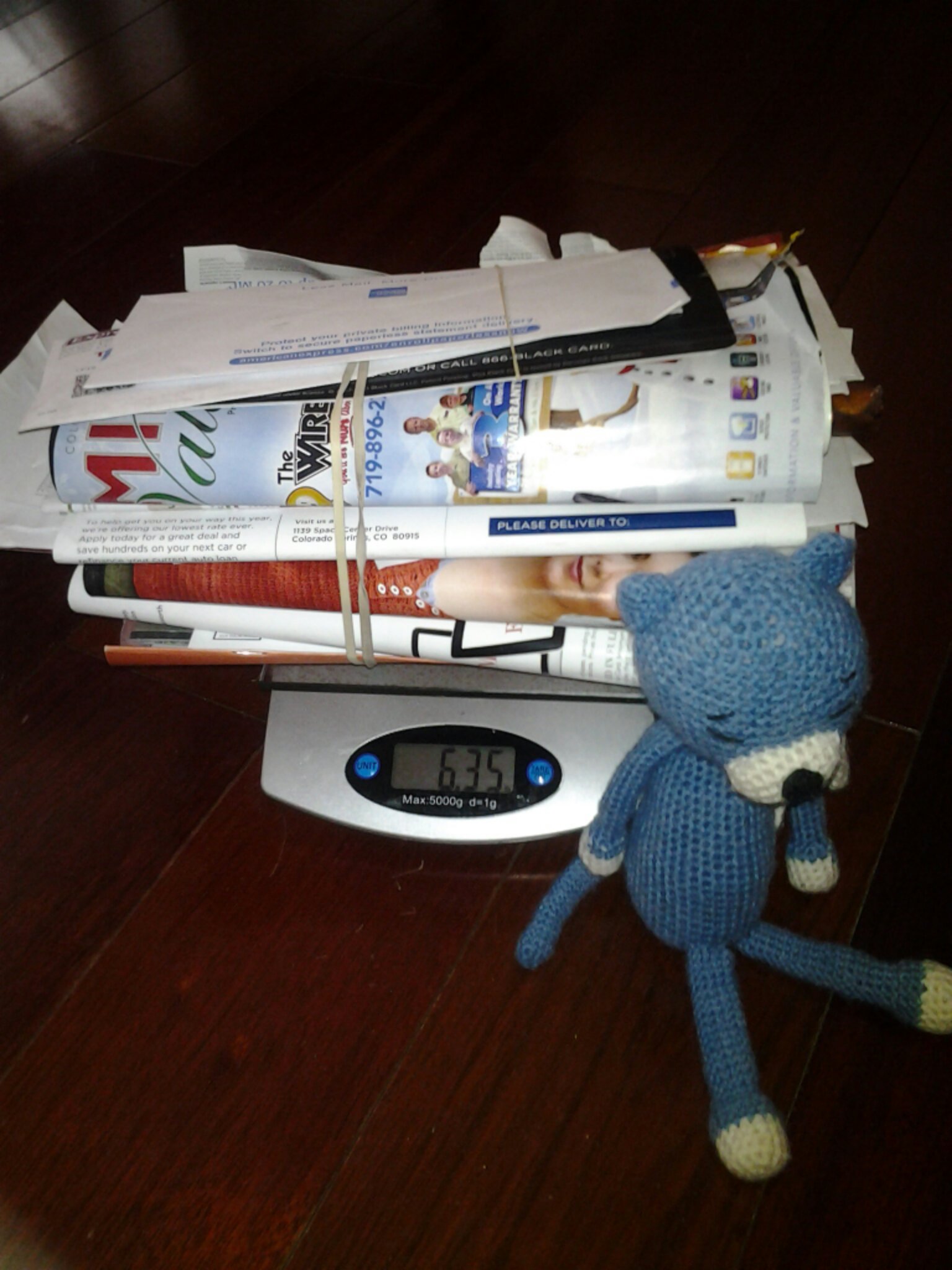 Six-point-three-five pounds of mail, to be exact. About half of it was for Blue Cat’s family, but the rest was glorious junk mail. There were some nice catalogs from LL Bean (3 to be exact – Blue Cat hopes they carry clothing in XXXXXXXXXS), some more credit card offers (Blue Cat could charge for a house by now), and some interesting insurance offers (but nothing from that funny lizard). And many had “important information enclosed.” (Blue Cat is hoping they’re invitations to the Oscars.)