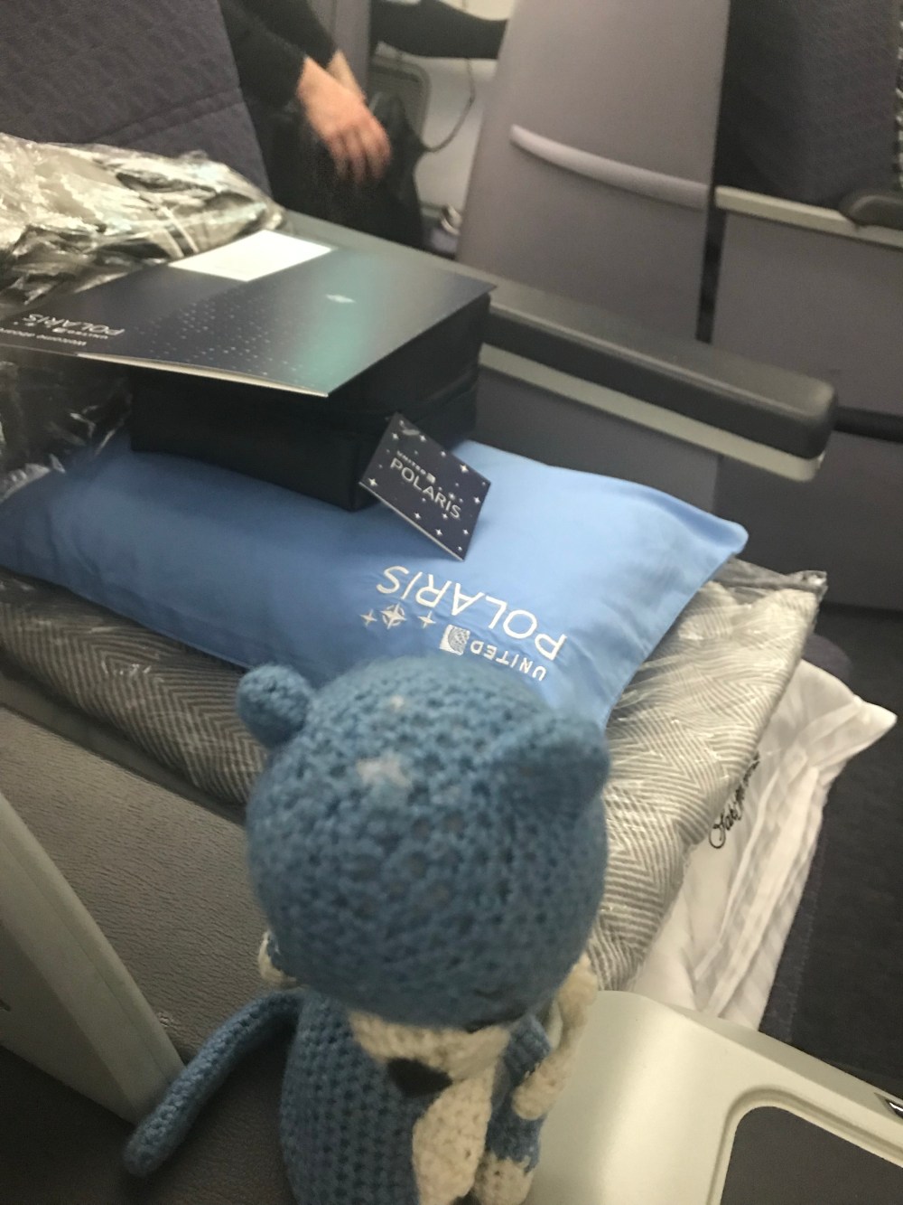 First was the flight. Blue Cat tried to be well prepared for the 9 hours – staying hydrated and making sure he had something to make him comfortable if he fell asleep.