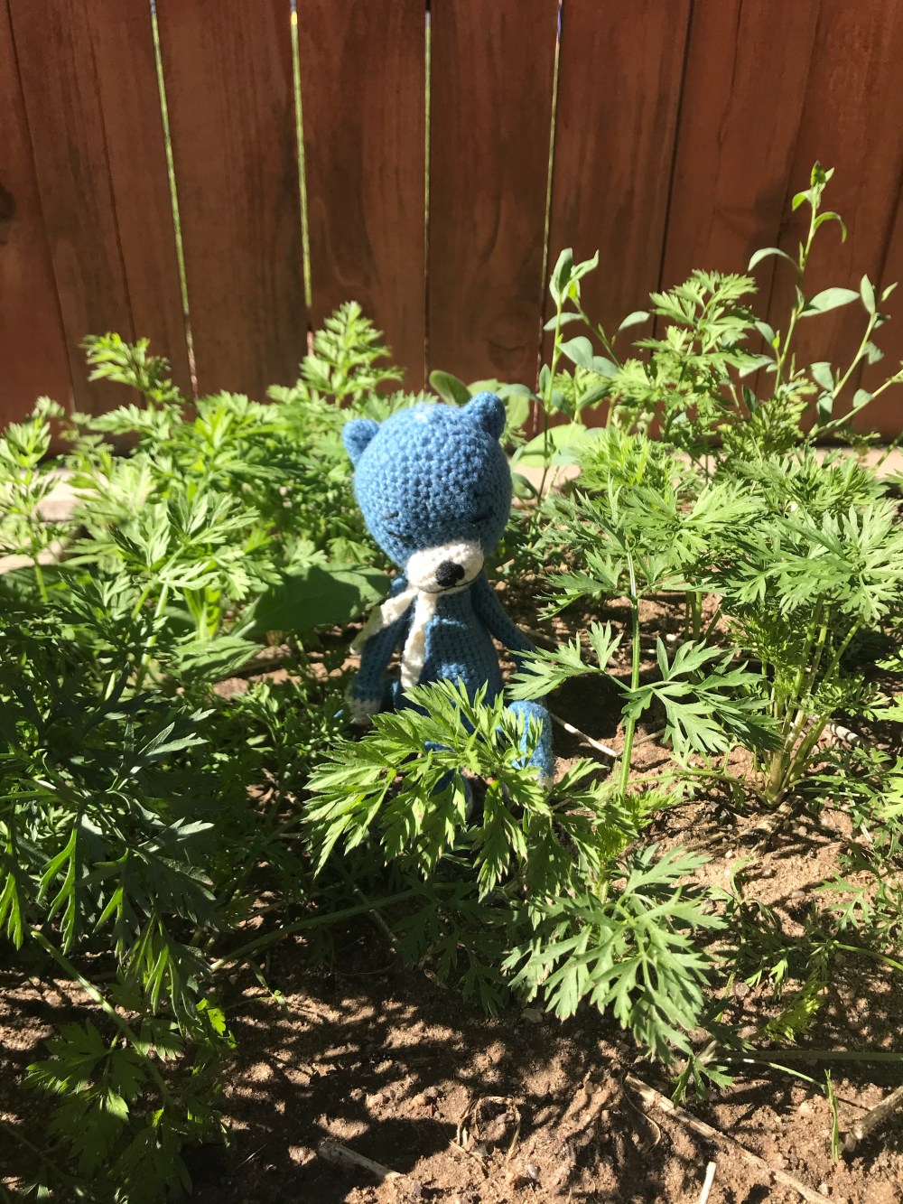 But there’s another kind of flower that Blue Cat is grateful for this year – the carrot flower. If you’ve never had a carrot go to seed it’s a wonderous thing – hundreds of seeds for each plant. Even if you cut all the stems and seed pods down in the Fall (which is what Blue Cat’s family did) a lot of seeds fall to the ground and start growing in the Spring. And so that’s why Blue Cat’s garden has carrots this year – all due to the magic of flowers.